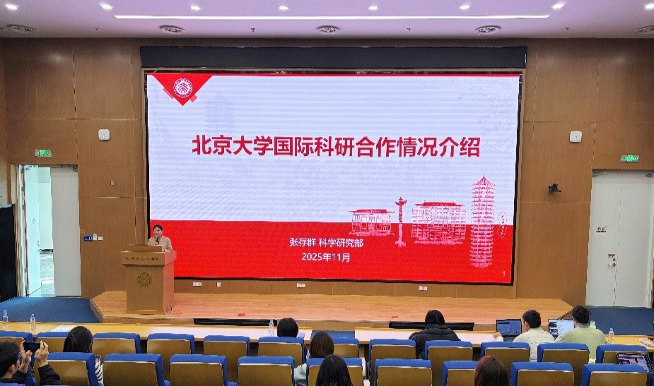 首先,科研部副部长张存群介绍了北京大学国际科技合作整体情况,并针对国际科研合作过程中如何加强风险防范进行了宣讲。她鼓励各院系和老师们深刻把握“十五五”时期的时代使命,积极承担国家级国际科技合作项目、参与建设高水平国际科技合作平台,主动布局和积极利用全球科技创新资源,共同应对全球重大挑战和难题,提升北京大学国际影响力。