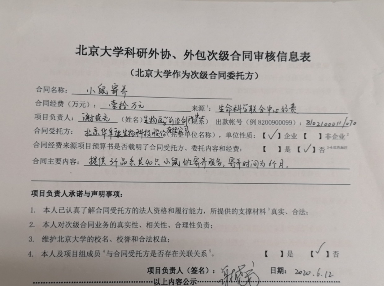根据《关于北京大学理工科科研次级合同管理的通知》,现将北京大学理工科科研次级合同“小鼠寄养”相关内容予以公示。