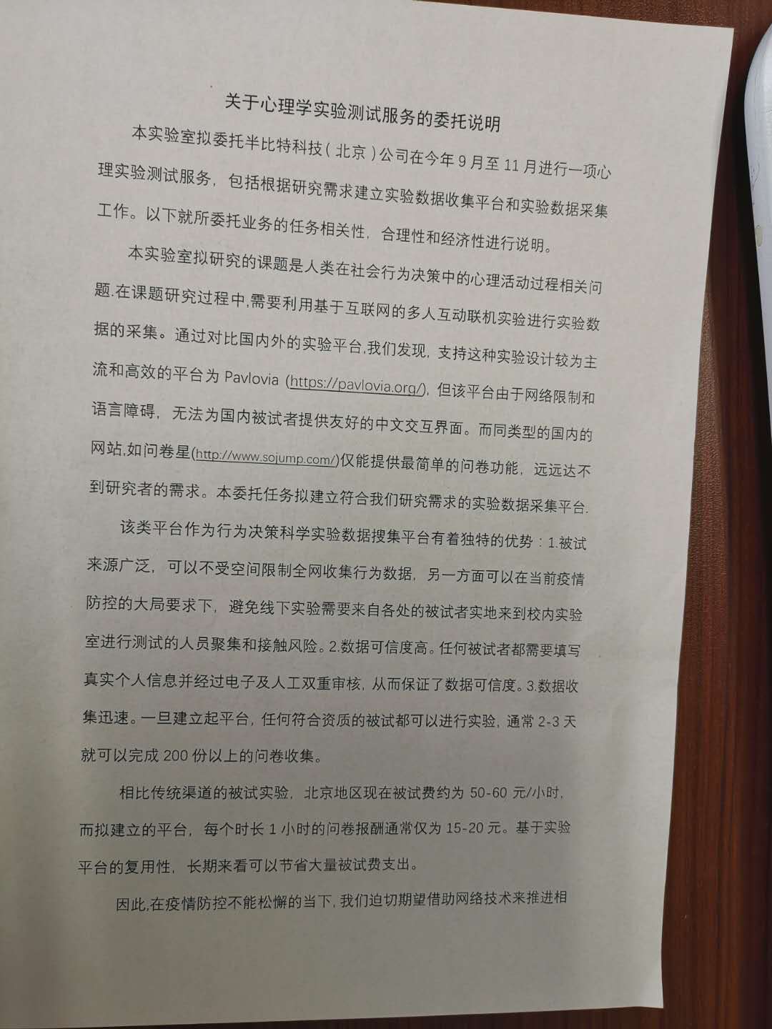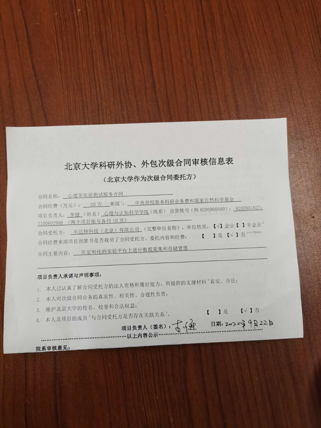根据《关于北京大学理工科科研次级合同管理的通知》,现将北京大学理工科科研次级合同心理学实验测试服务合同”的相关内容予以公示。公示时间:2020年09月25日-2020年09月27日(3个工作日)。合同相关纸质材料可经预约后到勺园5乙330办公室进行查阅。