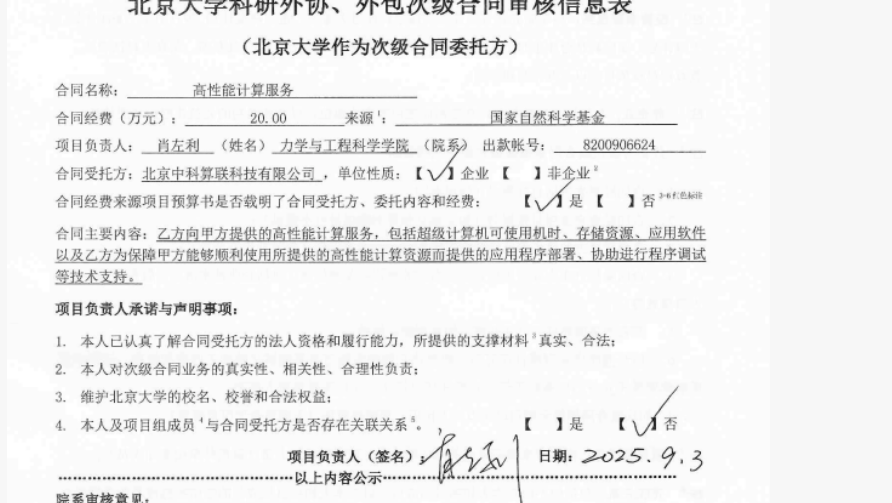 根据《关于北京大学理工科科研次级合同管理的通知》,现将北京大学理工科科研次级合同“高性能计算服务”相关内容予以公示。