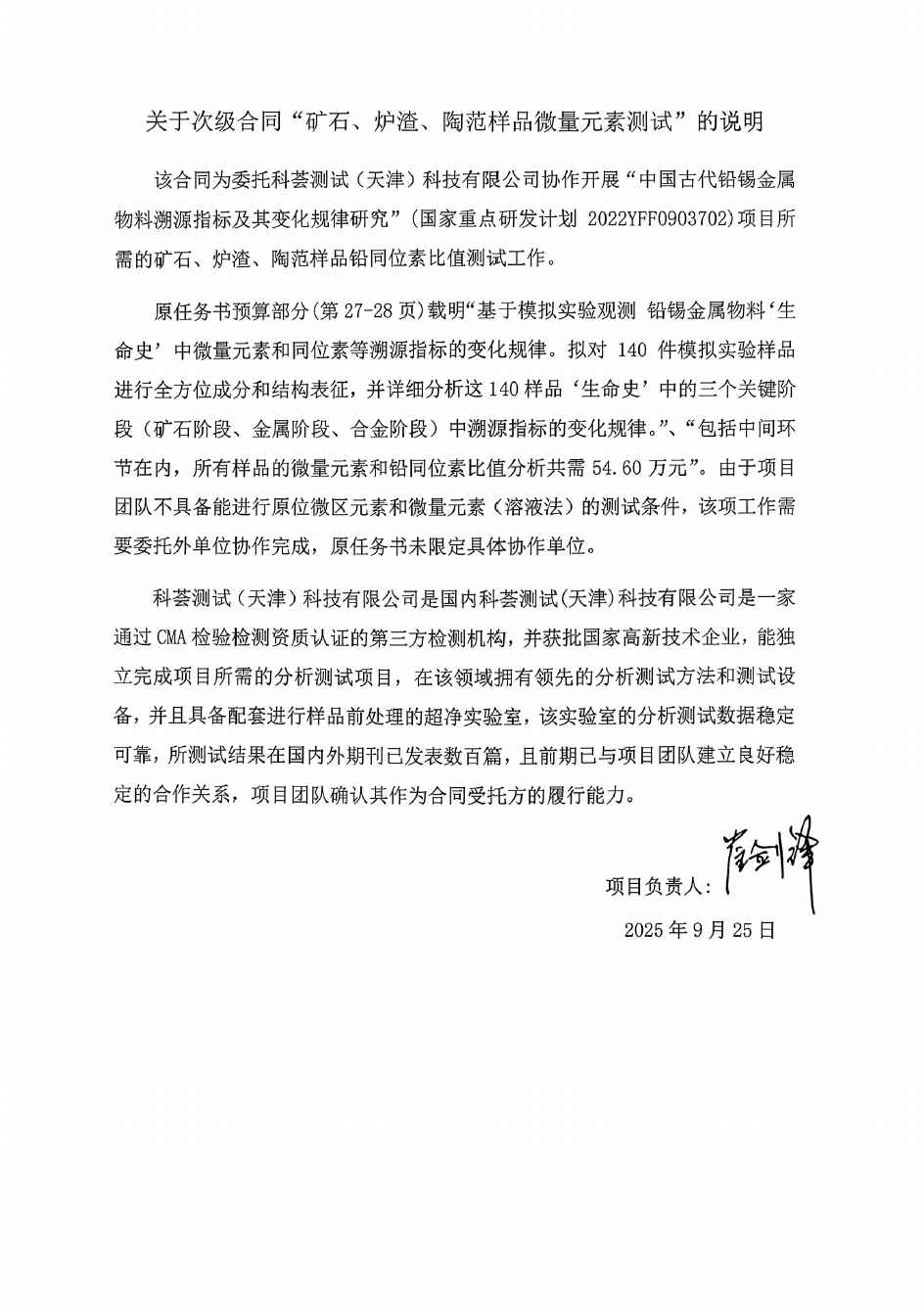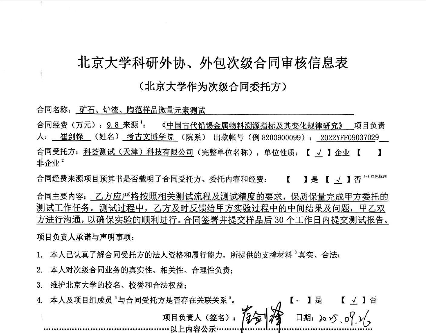 根据《关于北京大学理工科科研次级合同管理的通知》,现将北京大学理工科科研次级合同“矿石、炉渣、陶范样品微量元素测试”相关内容予以公示。