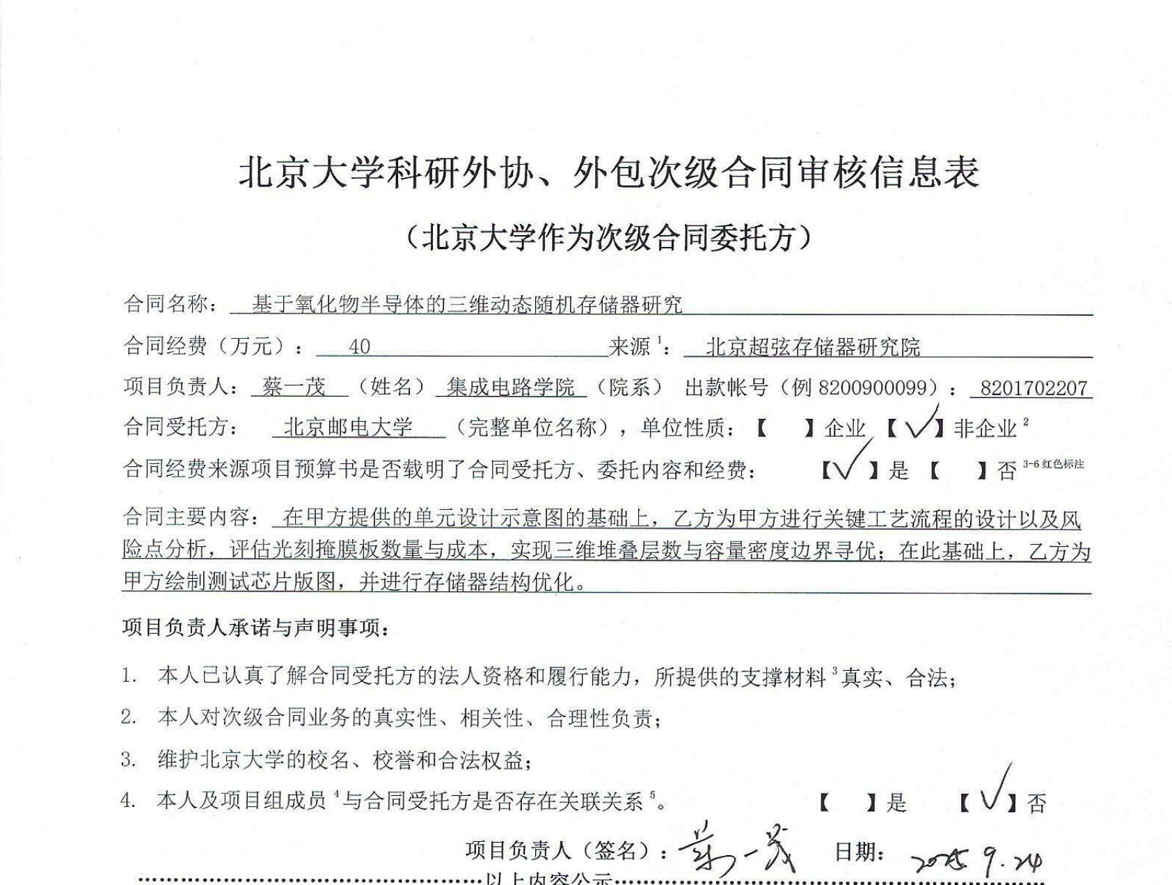 根据《关于北京大学理工科科研次级合同管理的通知》,现将北京大学理工科科研次级合同“基于氧化物半导体的三维动态随机存储器研究”相关内容予以公示。