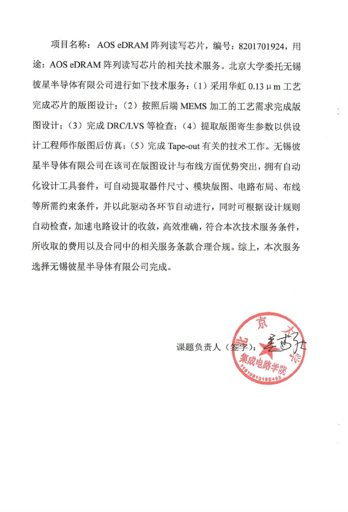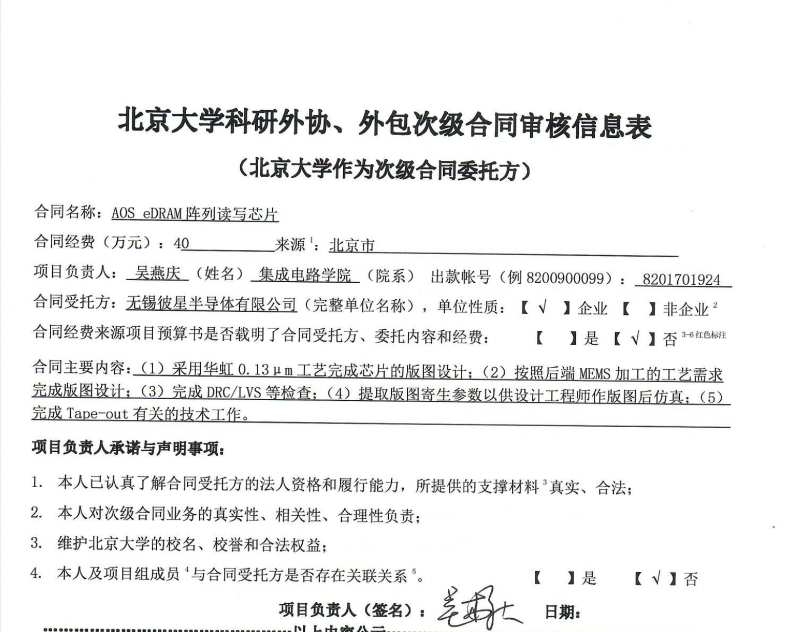 根据《关于北京大学理工科科研次级合同管理的通知》,现将北京大学理工科科研次级合同“AOS eDRAM阵列读写芯片”相关内容予以公示。