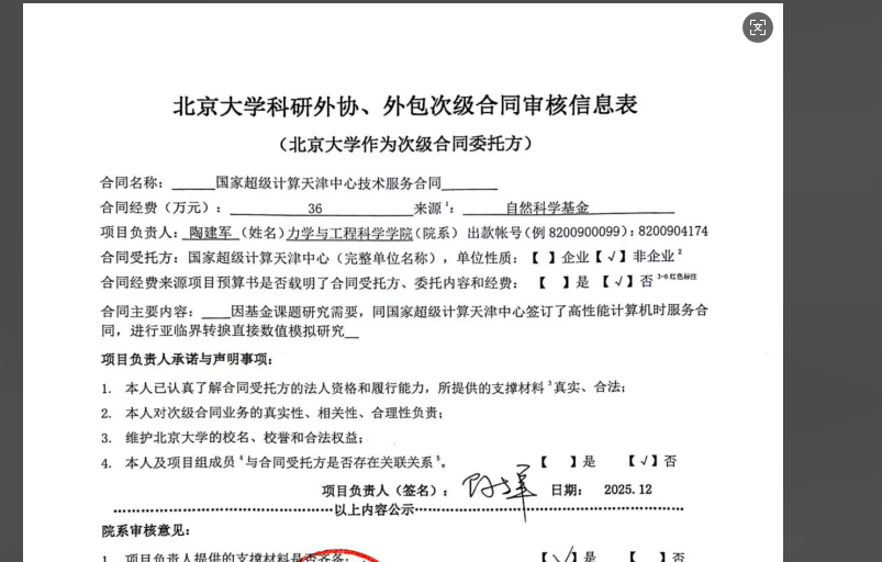 根据《关于北京大学理工科科研次级合同管理的通知》,现将北京大学理工科科研次级合同“国家超级计算天津中心技术服务合同”相关内容予以公示。